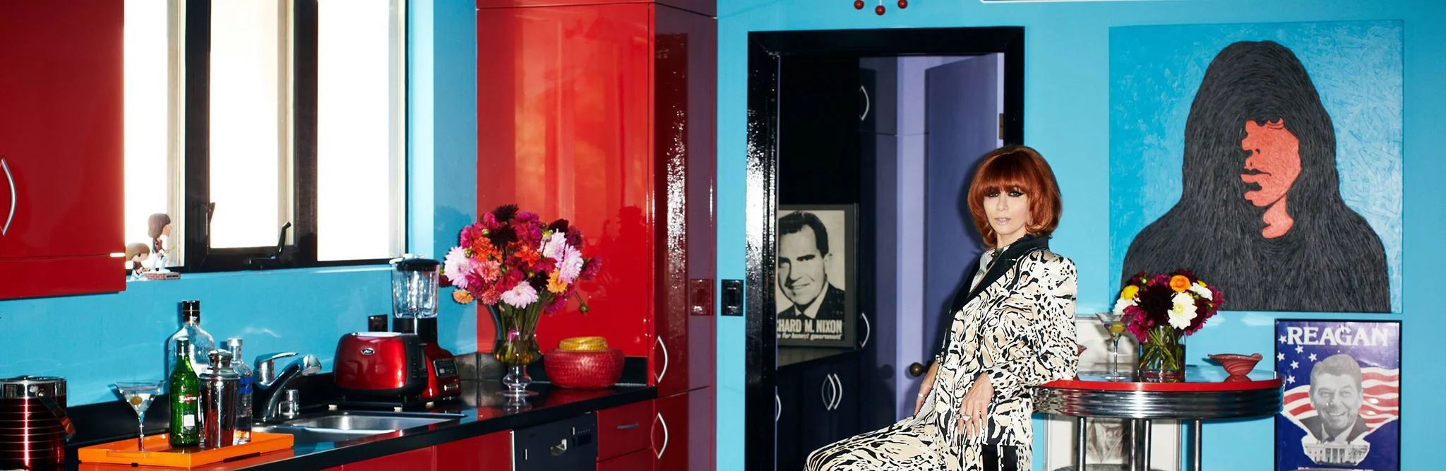 Linda Ramone offers two reasons that she and her husband, Johnny Ramone, of the legendary punk band the Ramones, moved to Los Angeles from New York after the group’s final show in 1996: the weather and a pool. So it’s fitting, then, that I walk past a kidney-shaped watering hole at her Sherman Oaks home to find Linda in the hot-pink-and-tangerine living room, looking like a ray of sunshine in a short bright-yellow shift dress. “Don’t you love it?” she says of the room’s squint-inducing decor. “We were inspired by a Nancy Sinatra album cover.”Linda Ramone offers two reasons that she and her husband, Johnny Ramone, of the legendary punk band the Ramones, moved to Los Angeles from New York after the group’s final show in 1996: the weather and a pool. So it’s fitting, then, that I walk past a kidney-shaped watering hole at her Sherman Oaks home to find Linda in the hot-pink-and-tangerine living room, looking like a ray of sunshine in a short bright-yellow shift dress. “Don’t you love it?” she says of the room’s squint-inducing decor. “We were inspired by a Nancy Sinatra album cover.”